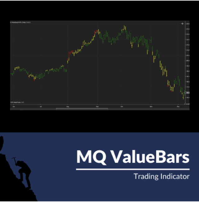 MQ ValueBars - There are 3 primary attributes that help determine price - Cost, Momentum and Value. The MQ ValueBars indicator provides the value component to help you understand: